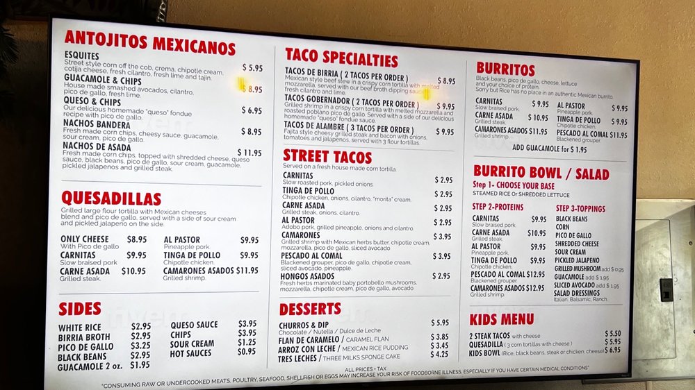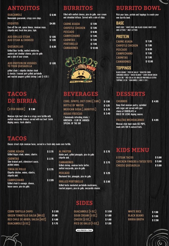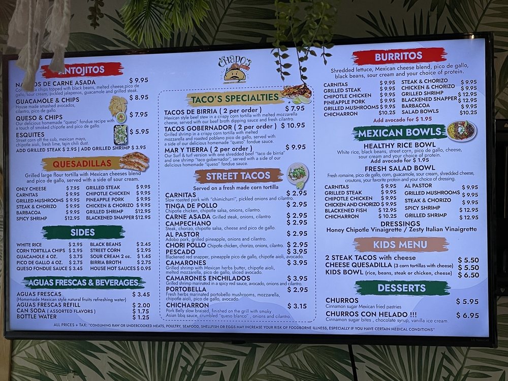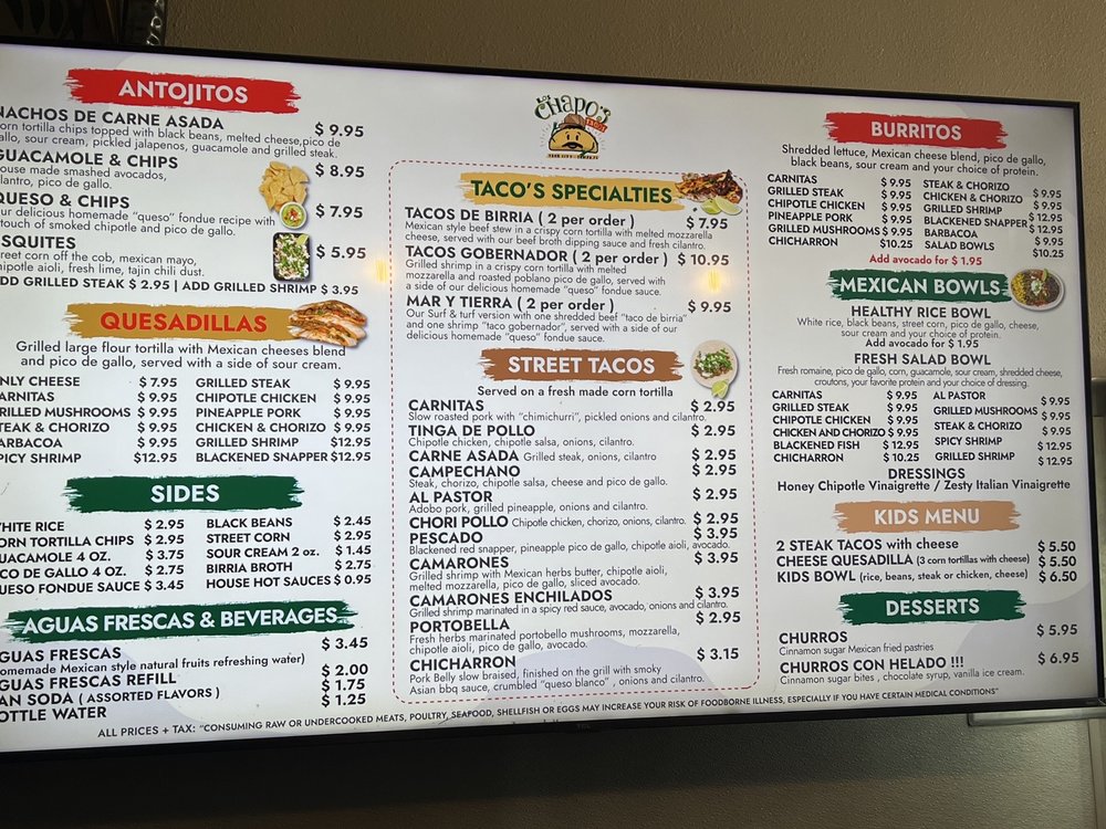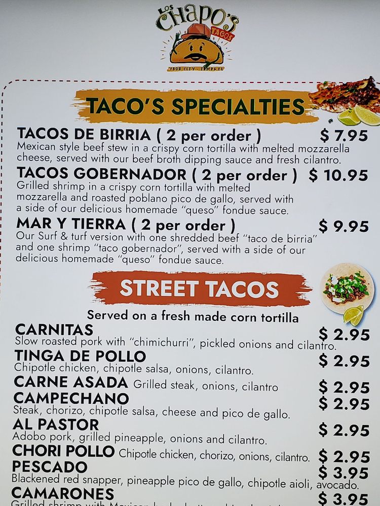Los Chapos Tacos, located in Tampa, FL, offers a variety of taco specialties with a trendy and casual atmosphere. The menu includes authentic Mexican tacos like Asada, Pollo, and Al Pastor, as well as unique creations such as Tacos De Birria and Surf and Turf Tacos. Not only does Los Chapos Tacos provide delicious options for meat-eaters, but they also offer Vegan and Limited Vegetarian options, making it a versatile choice for all diners. The restaurant goes the extra mile by providing a range of amenities, including delivery, takeout, wheelchair accessibility, and even gender-neutral restrooms. The commitment to sustainability is evident through compostable containers and plastic-free packaging. Los Chapos Tacos stands out as a must-try spot for flavorful tacos in a vibrant setting.